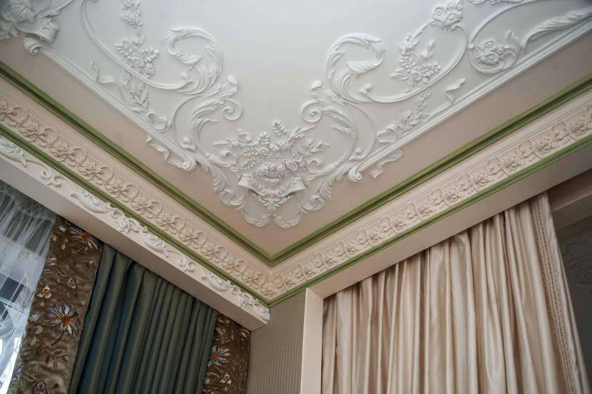 Монтаж лепнины из гипса следует выполнять в помещении, которое находится на первой стадии ремонта. Работа с гипсом – это образование большого количества въедливой мелкой пыли, которая способна испортить уже начисто отремонтированные поверхности.