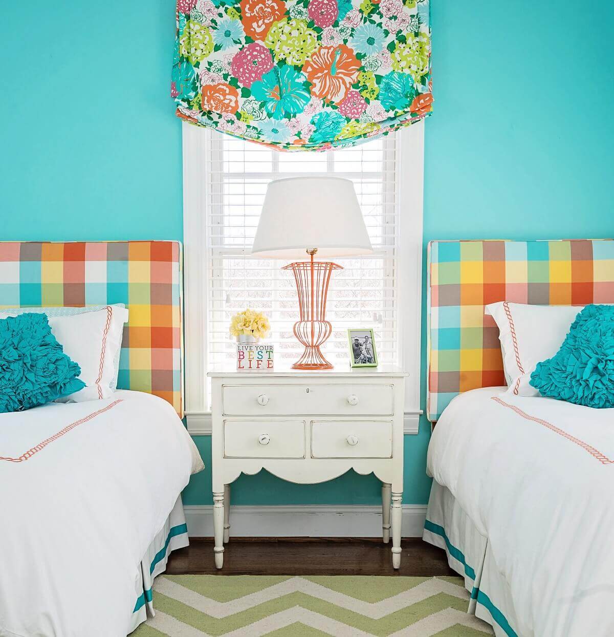 Хотите создать яркий дизайн, тогда используйте сочные оттенки голубого или сочетайте его с красочными насыщенными цветами: например синий цвет в интерьере спальни.