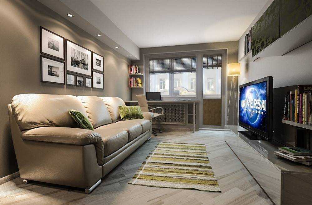- Совместите гостиную с кухней, или спальней, организуйте рабочее место.