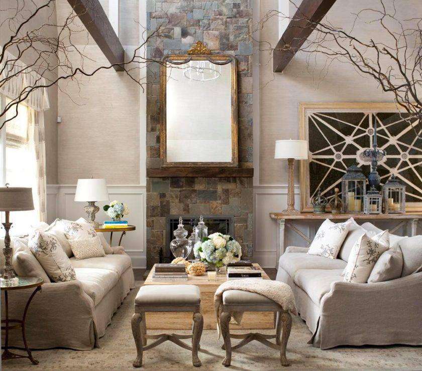 Эта поверхность в гостиной, интерпретируемой в стиле модерн, так же как и остальные, не остается без внимания художников. Её тоже покрывают характерными для стиля элементами, только выглядит она несколько скромнее. В модерне никогда не обустраивают многоярусные конструкции, которые так украшают арт-деко, зато на модерновых потолках всегда есть оригинальная роспись и даже могут появиться целые картины. Уместны здесь и деревянные перекрытия, которые напоминают переплетения ветвей деревьев.