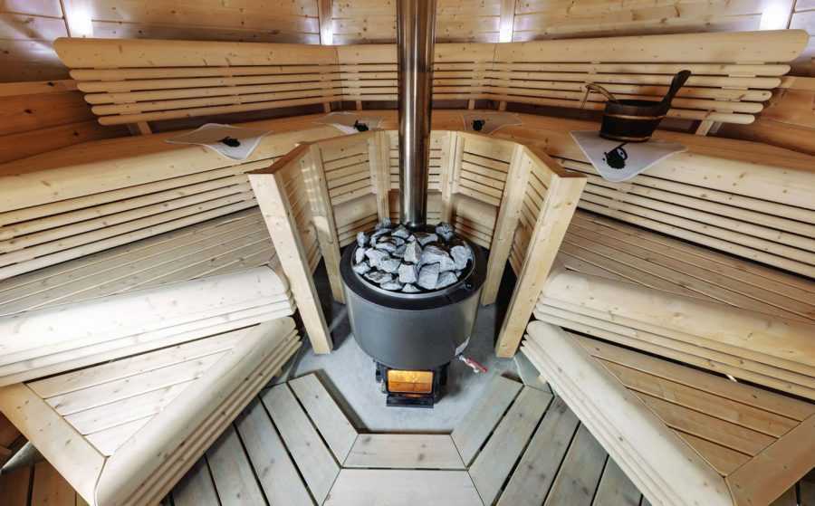 - парная – здесь происходит основной процесс паровой обработки тела. Она самая сложная по конструкции, и в обязательном порядке там должна быть печь, которая прогревает камни, которые впоследствии обдаются жидкостью и образуют пар. Для удобного размещения посетителей обязательно устанавливаются лежаки, или, как их называют по-другому, полки;