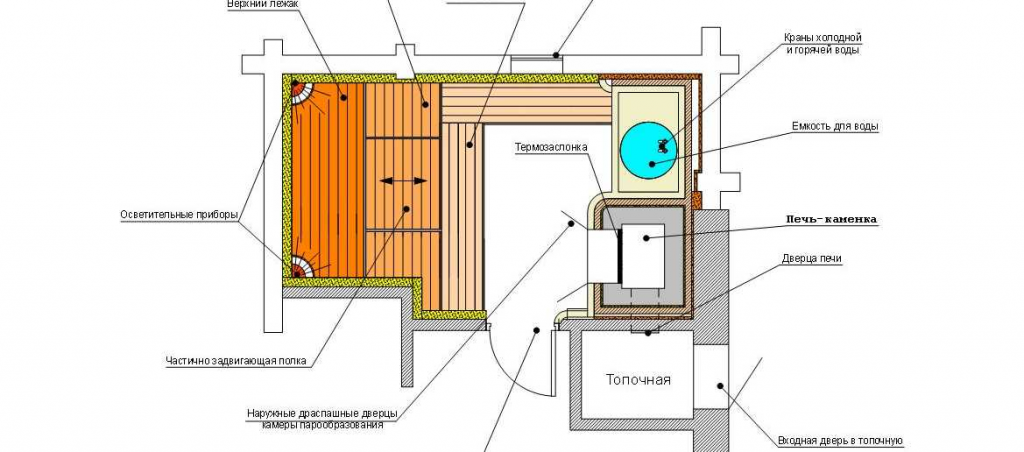 Каждый тип бани включает такие функциональные помещения: