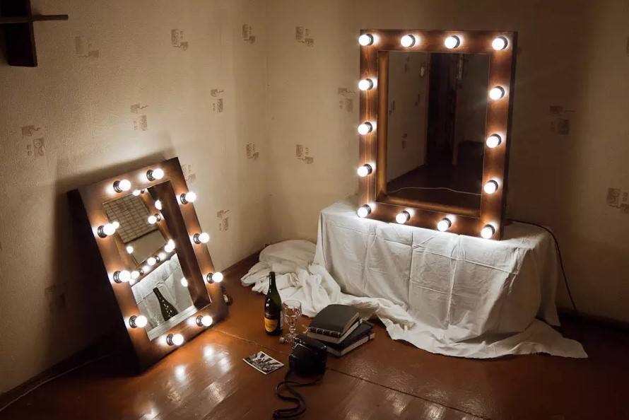 Хлопоты по постановке света для наложения косметики более умозрительные, а физические сводятся к закупкам комплектующих. Но вот раму для зеркала с подсветкой нужно делать самому, иначе к чему весь этот сыр-бор? Ее конструкцию традиционно копируют с театральных гримировочных зеркал; патроны ламп утапливаются в раму по венчик. Но физических, технических, физиологических и др. объективных причин этому нет. Есть всего одна, и скорее историческая – гастроли.