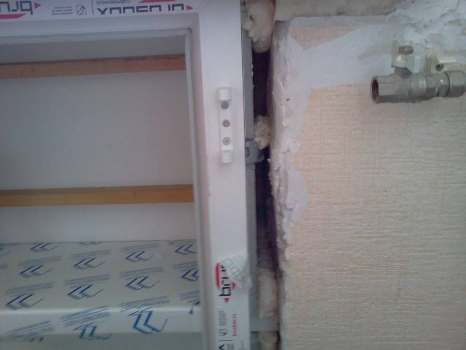 В полученное пространство монтируют новую металлопластиковую раму, предварительно сняв с нее дверцы