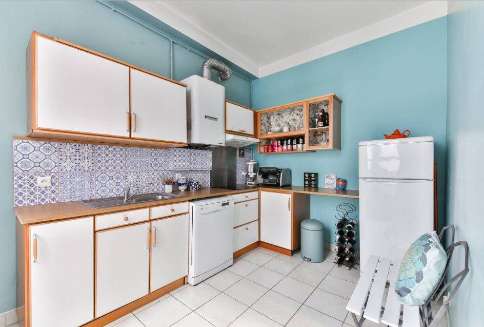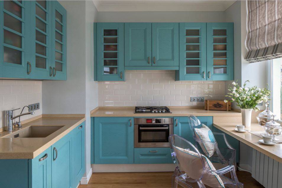 Рассмотрим, как сделать кухню уютной. Стоит отдать предпочтение светлым оттенкам: персиковому, бежевому, голубому. Гармонично смотрятся интерьеры с морской или лесной тематикой. Надо нарисовать на столешнице и шкафчиках цветы, листья, птиц или рыб. Необходимо знать, как преобразить мебель, если нет таланта к рисованию. Вместо изображений можно использовать узоры или сделать выбор в пользу лаконичного однородного цвета.