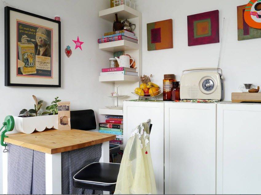 Отличным украшением станет картина, например натюрморт с фруктами или овощами. Стоит подобрать стильные наклейки под цвет мебели. Они должны подходить под общую тематику кухни.