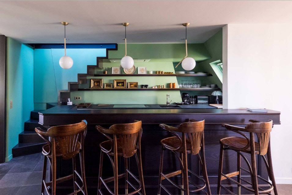 Можно с помощью такого приема оформить стенку над бар-стойкой