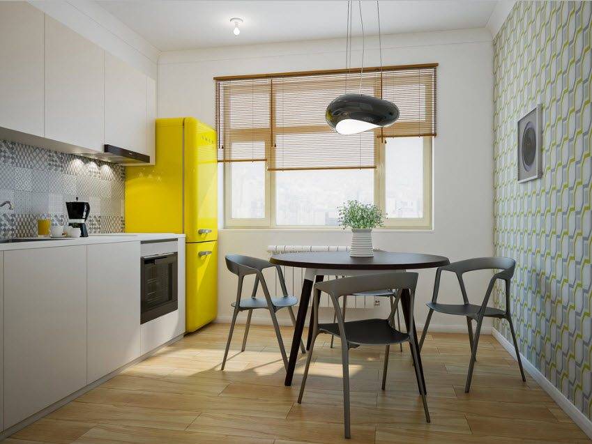 В маленьком помещении подойдут легкие занавески из прозрачной или полупрозрачной ткани. Более просторные классические кухни можно украсить шторами, состоящими из тюля и портьер. В интерьеры стиля минимализм отлично впишутся простые рулонные шторы или жалюзи.