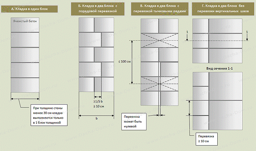 Правильная перевязка швов при кладке изделий из вспененного бетона