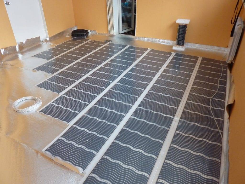 Напольная отопительная ИК-система – тонкие пленочные маты с плоскими нагревательными элементами. Для их укладки можно использовать стяжку любого вида, а в качестве финишной отделки применять натуральный камень, ламинат, керамическую плитку, линолеум и другое покрытие.