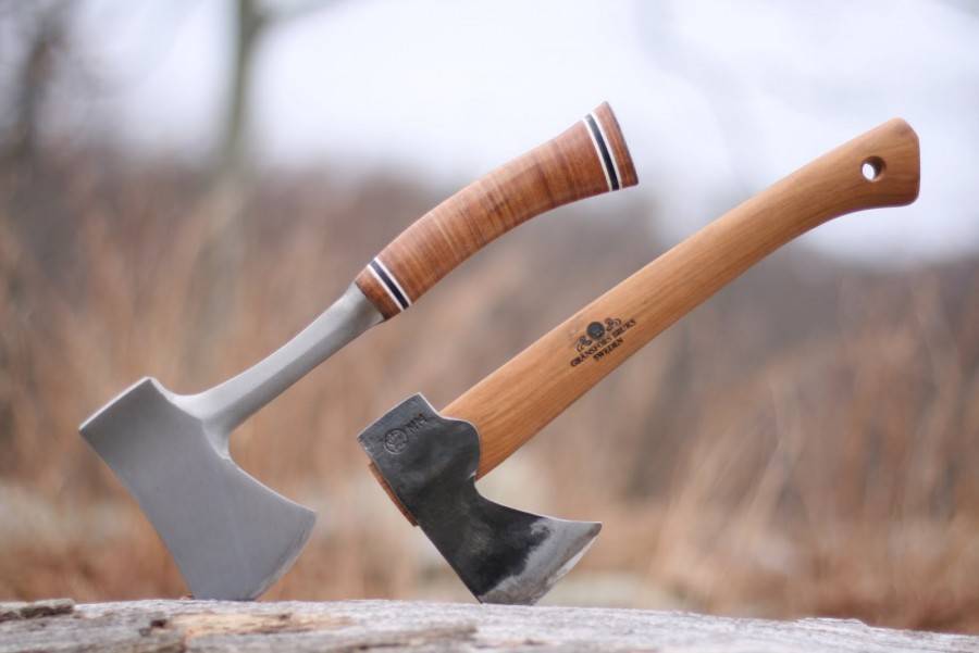 Заготавливать дрова лучше таким инструментом, как топор. Также этот инструмент можно использовать при затёсывании элементов из дерева, или в качестве молотка.