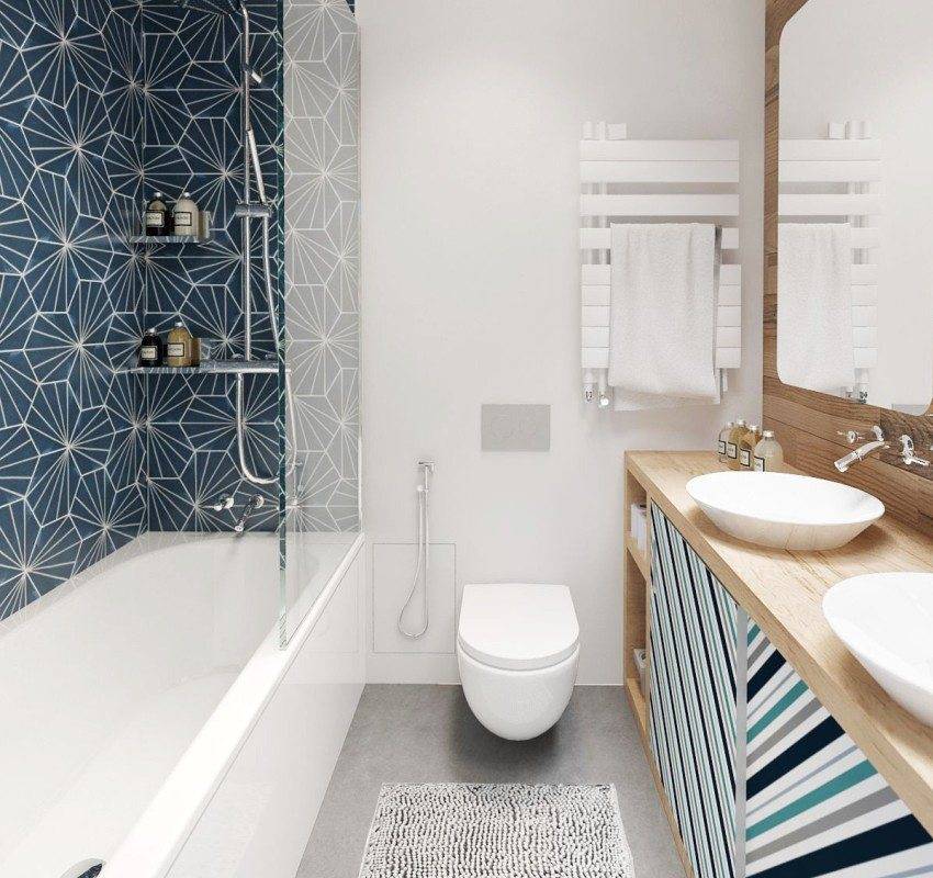лучше использовать плитку средних и малых размеров — это более предпочтительный вид плитки для маленькой ванной комнаты. Фото дизайнов демонстрируют нам, что такие интерьеры более выразительные и стильные;