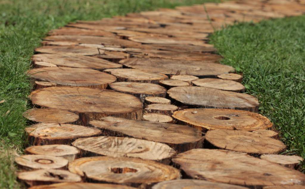 Сделать тропку из дерева можно даже в огороде между грядками