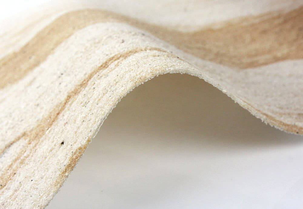В результате вышеописанных действий на тканном материале остается естественная природная текстура, формировавшаяся много тысячелетий. Причем если в составе такого пласта присутствует глина, то гибкий камень будет иметь коричневые и красные прожилины, тогда как наличие железосодержащих руд обеспечит материал бурыми оттенками, а песчаник – сформирует яркие желтые разводы. Иными словами в результате среза каменной породы получится уникальная текстура, характеризующаяся великолепными эстетическими и эксплуатационными характеристиками.
