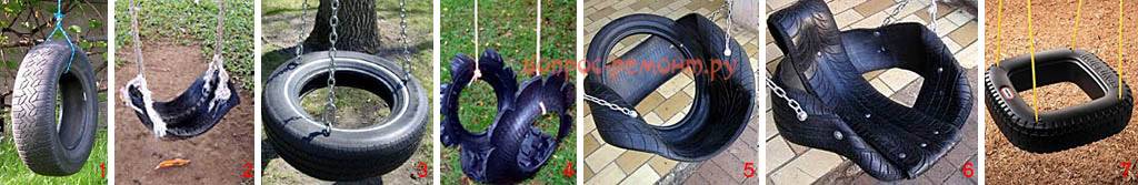 Детские. Простые качели могут иметь различную модификацию. В основном они состоят из опоры, сиденья и крепежа