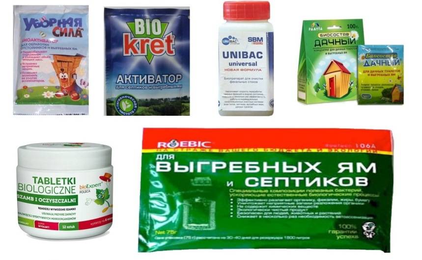 «Доктор Робик» (США). Препарат относится к категории биоактиваторов. Он содержит более 7 действенных «полезных» бактерий, которые способны расщепить и обработать бытовую химию в сточных ямах и отходы в дачных туалетах. Чтобы эффективно обработать составом полость, разведите препарат согласно инструкции и вылейте в полость. Частота проведения обработки зависит от времени года и температурного режима, поэтому внимательно читайте рекомендации производителя. Запах исчезает не сразу, а лишь по истечении определённого времени (15—20 часов).