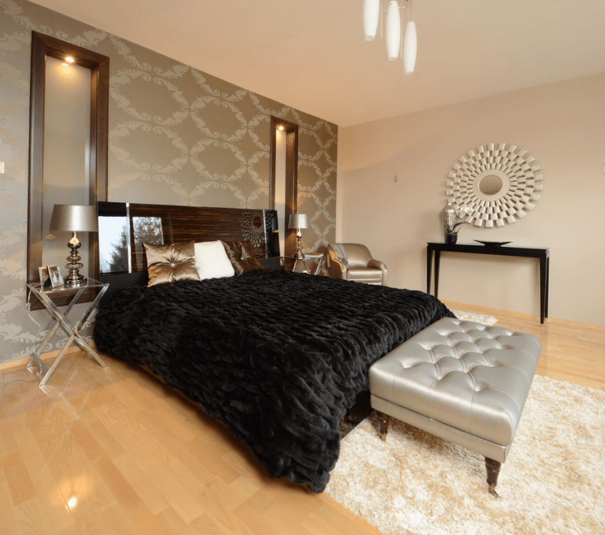 В современных дизайнах интерьера стали чаще использоваться краска, 3D-панели, декоративная штукатурка, но обои не теряют своей уникальности. Можно экспериментировать с ними и выбирать любой материал, ведь спальная комната менее подвержена загрязнениям, чем, например, кухня.