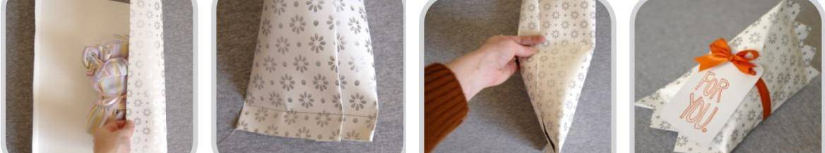 Такой универсальный материал идеально подходит для оформления любого подарка. С её помощью можно упаковать выбранный элемент разными способами:
