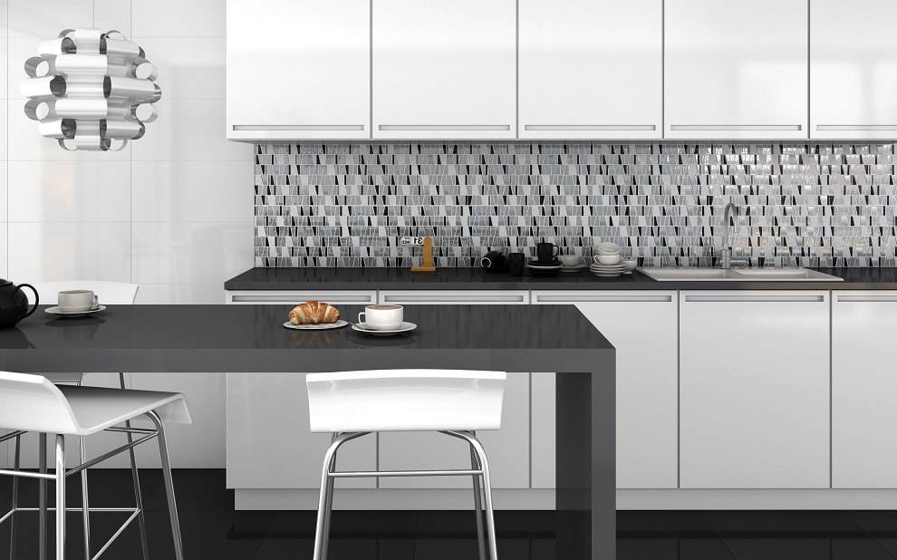 Оптимальный вариант, который сочетает в себе приемлемую цену и качество, позволяет создать оригинальный дизайн рабочей зоны и отвечает принципам долговечности. Этот способ отделки подходит для больших и маленьких помещений, кроме того, плитку можно вписать в любой стиль интерьера.