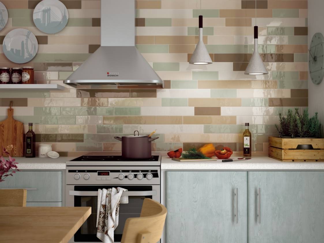 Для облицовки кухонного фартука используют следующие варианты плитки: