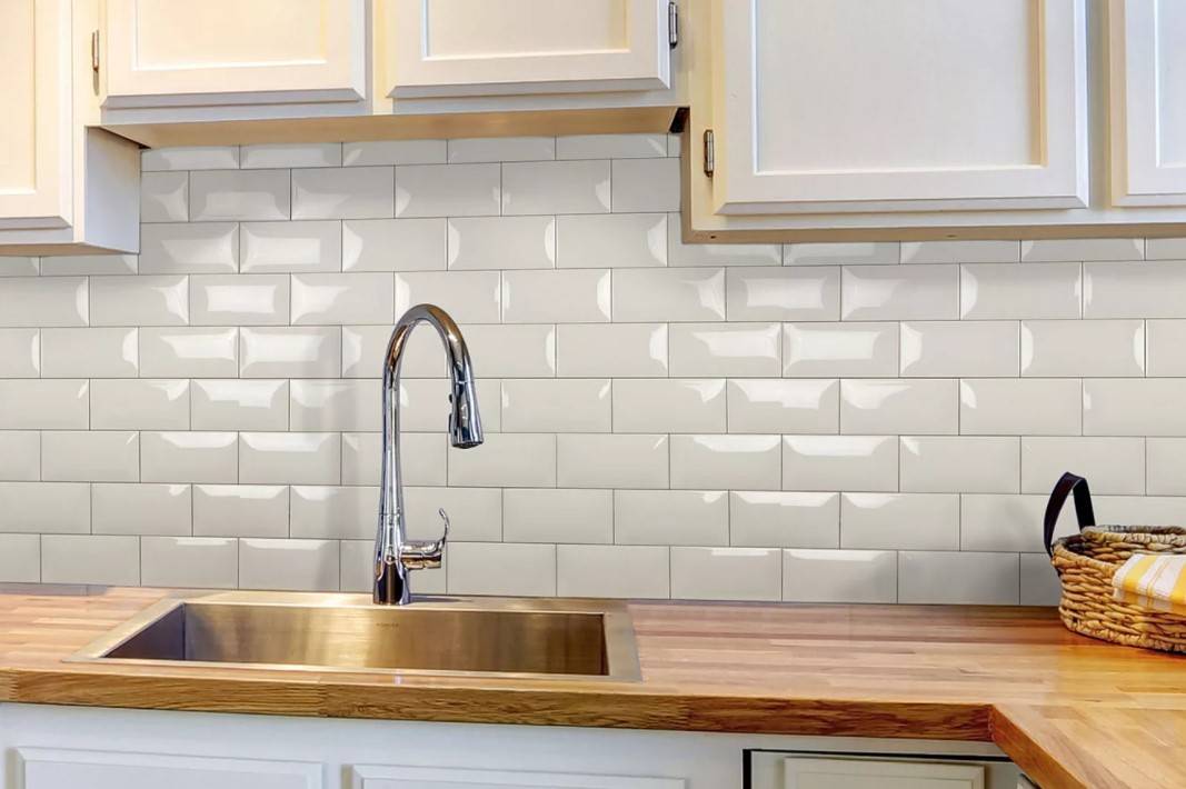 Популярный вариант — с гладкой однотонной поверхностью, подходящий для разных стилей и габаритов кухонь. Размеры — 7,5х15 или 10х20. Хорошо дополняется декором с нанесенным фотопечатью рисунком.