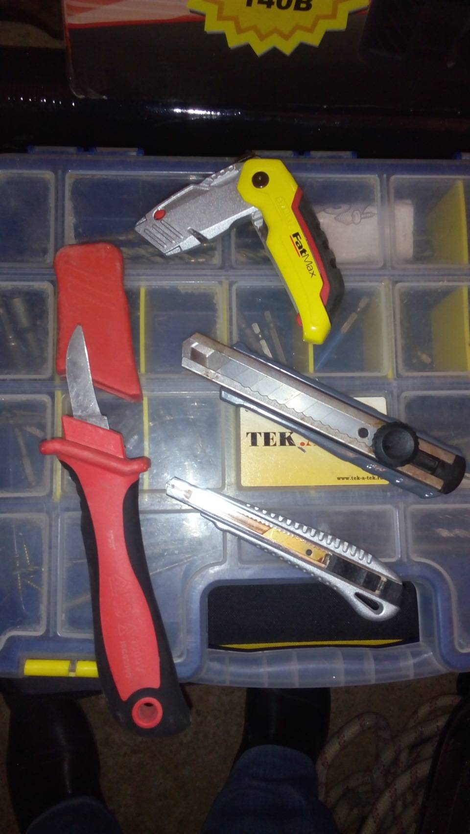 три вида отверток. да двое плоскогубцев да нож больше нафиг ни че не нужно только время занимает переклаывания из кармана в карман… а таскать полные карманы инструмента ниодин мантажник небудет… это все понты…