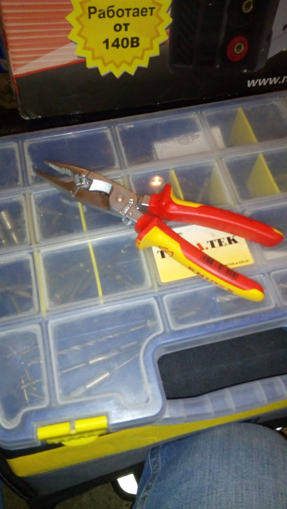 Прежде всего это инструментарий общего назначения. И его предметов настолько много, что потребуется либо чемодан для инструментов электрика, либо специальная сумка, либо профессиональный пластиковый ящик. Многие рекомендуют сумку Matrix, она вместительна и очень удобна. Пластиковый ящик, выпускаемый специально под инструменты электрика, тоже очень хорош. В нём два отделения: верхнее – для мелочи, а глубокое нижнее – для более крупных по габаритам. Там помещается практически весь инструмент электрика. Перечень будет дан ниже.