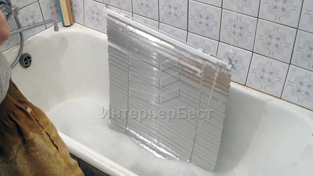 - В ванну набирается чистая вода. Проводится полоскание изделия до тех пор, пока вода и ламели не станут идеально чистыми .