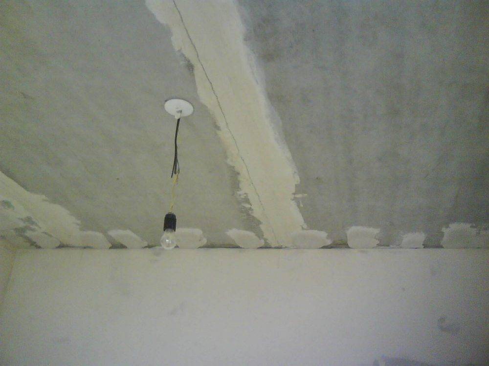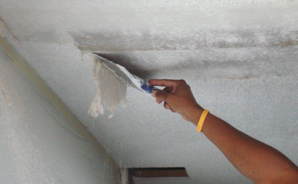Если потолок покрыт старым слоем штукатурки то, прежде всего его нужно проверить на целостность, путём постукивания – пустоты нужно удалить и заново заштукатурить.