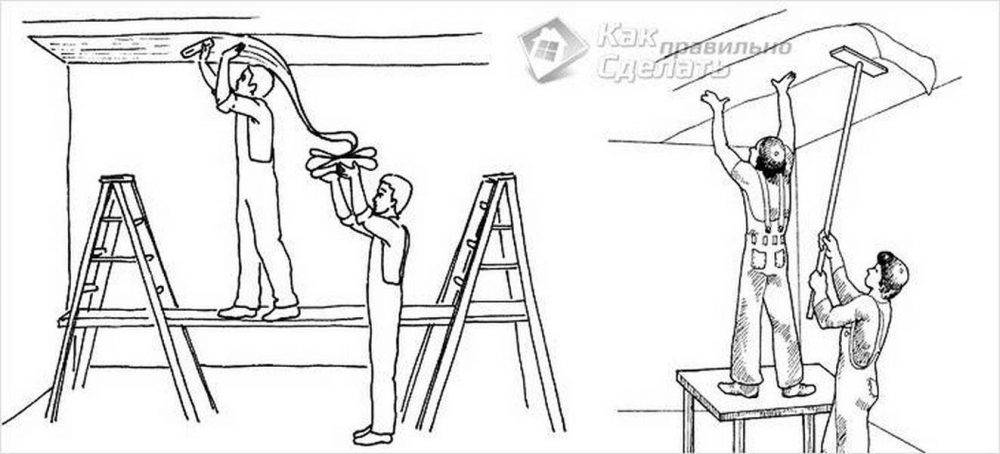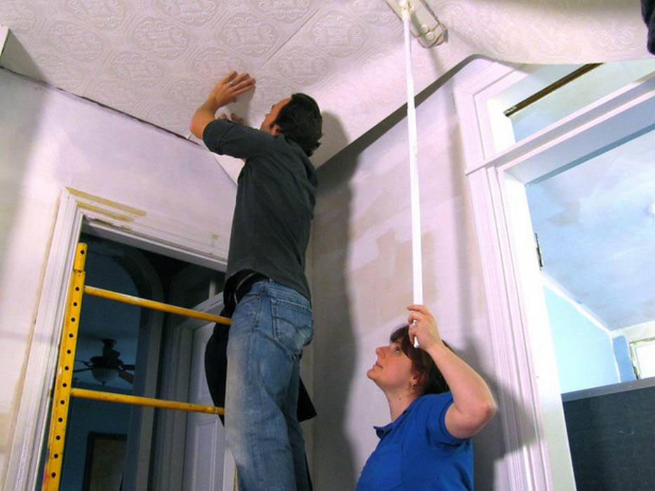 Клеим обои на потолок