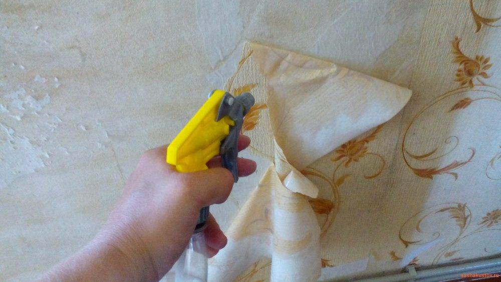 Старые стеновые полотна промокните водой, чтобы они лучше снимались. Лучше всего делать это при помощи ветоши или мягкой губки