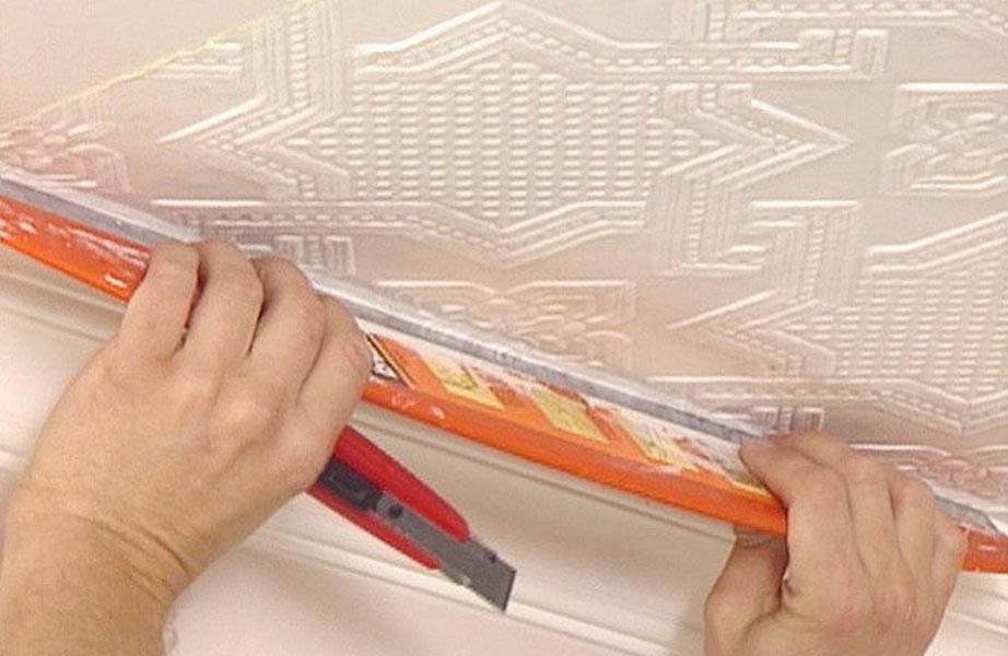 Не менее важный этап ремонта производится перед нанесением шпалер на перекрытие, операцию нельзя назвать легкой, нужно проявить внимательность и точно нарезать заготовки по размеру. Следует приготовить острый нож или ножницы, в зависимости от того, каким приспособлением будет удобно работать мастеру.