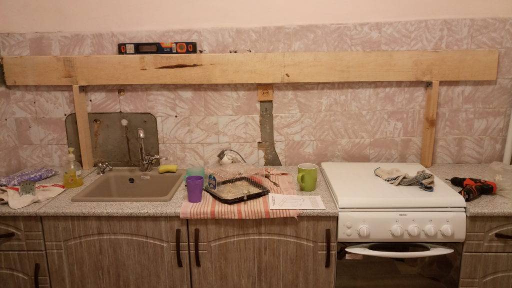 Если стены при ремонте кухни не выравнивались, то крепление на уголки будет лучшим вариантом. Устаревший способ – не значит плохой, просто придется потратить на монтаж немного больше времени, чем при использовании других видов крепежей.