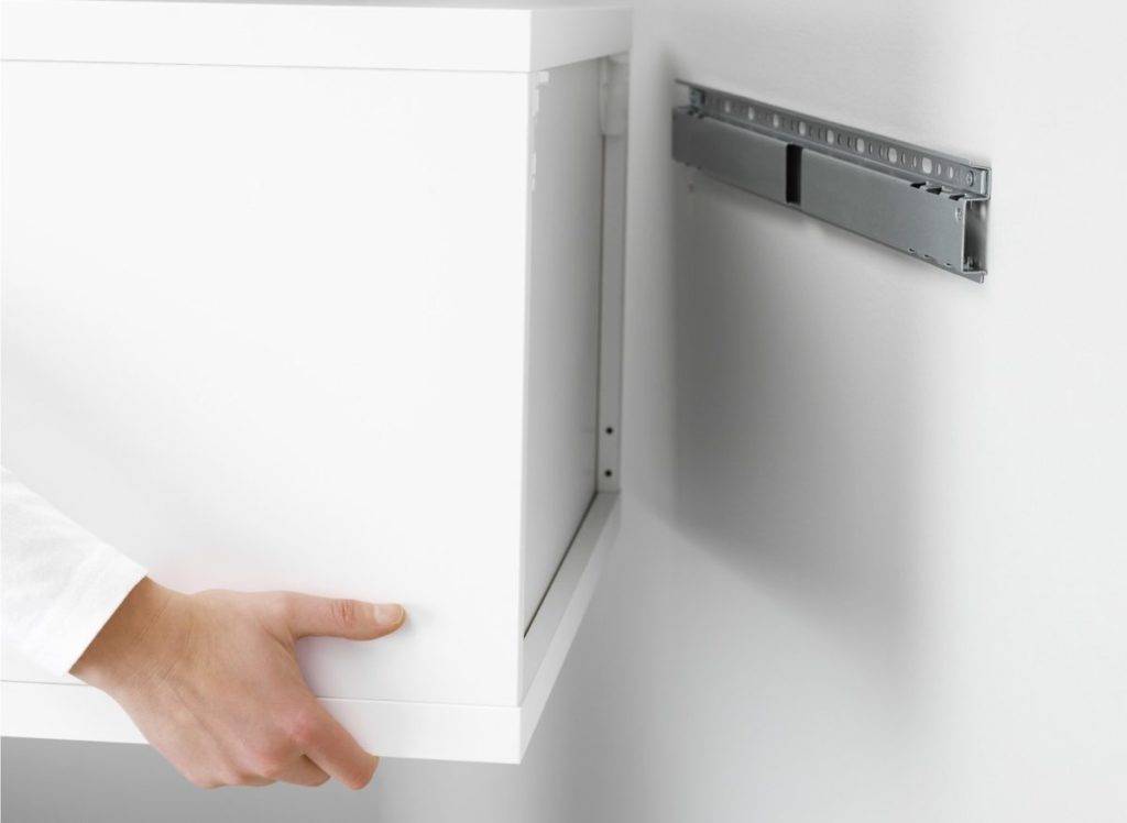 - Самостоятельный монтаж. С установкой навесных шкафов можно справиться самостоятельно, сначала закрепив на стене планку, а, затем, установив на нее модули.