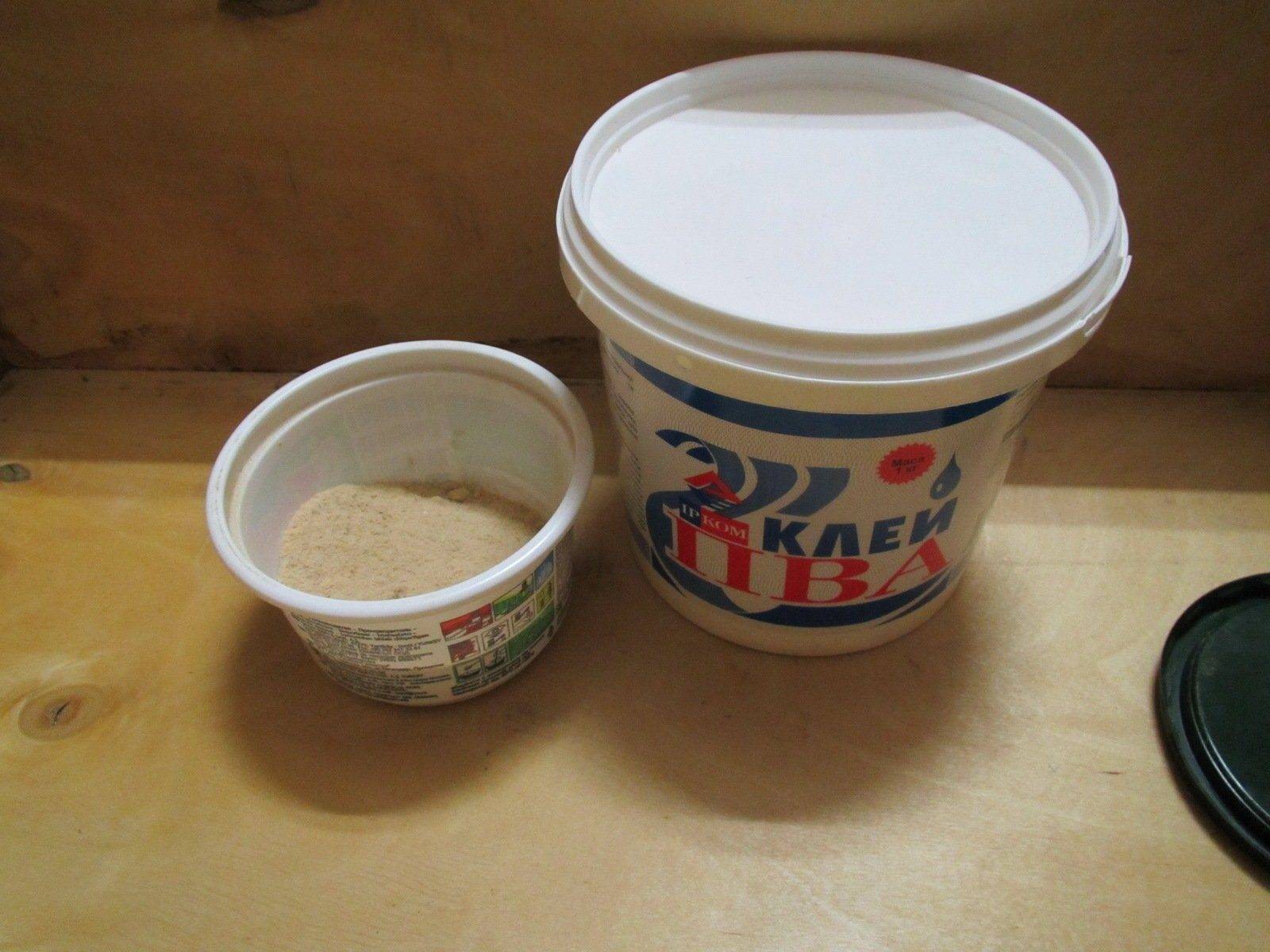 Для создания клея своими руками перемешиваются ПВА-клей, шпаклевка и вода. Клеевой раствор должен быть использован в течение 120 минут. Дешевый вариант поклейки плинтусов.