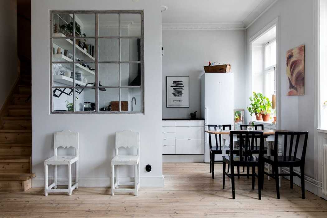 Деление кухни и гостиной маленькой перегородкой возле окна