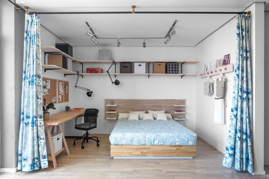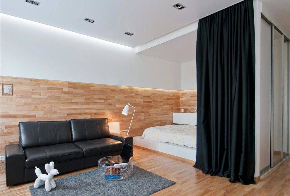 Совет: При планировании зонирования данным способом учитывайте тот факт, что шторы подойдут далеко не для каждого стиля интерьера. Они будут гармонично смотреться в квартире, оформленной в скандинавском или эко-стиле. А вот классика, минимализм и арт-деко не приемлют отделение спального места шторами.