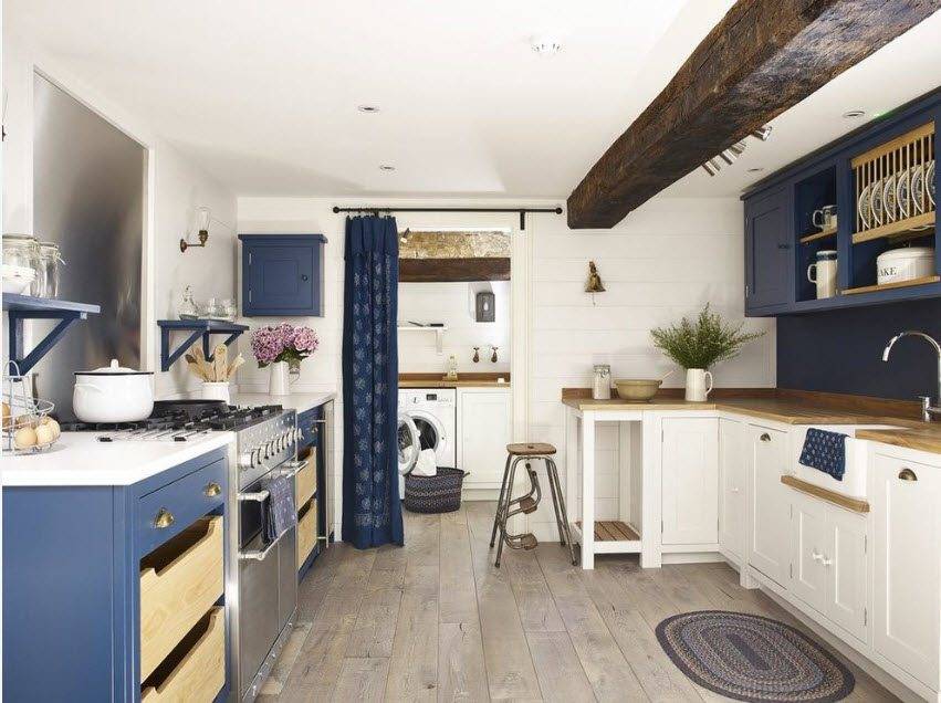 Совет: Красивым элементом декора на кухне и в то же время отделителем будет бамбуковая шторка-жалюзи. Она прекрасно впишется в любой стиль и очень практична – в случае загрязнения ее легко отмыть традиционными средствами.