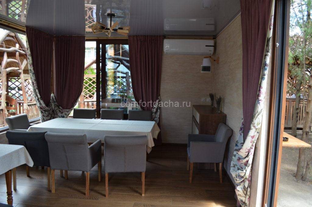 Хорошим решением станут мебельные изделия из натуральных материалов и отделка с намеком на винтажность. Можно еще сформировать футуристическую обстановку. Отличным вариантом станет отделка, и меблировка внутренней части строения в соответствии с определенным увлечением – к примеру, в этническом стиле. Общепринятых стандартов отделки закрытых беседок нет поэтому вы можете воплотить в жизнь свои идеи и мечты.