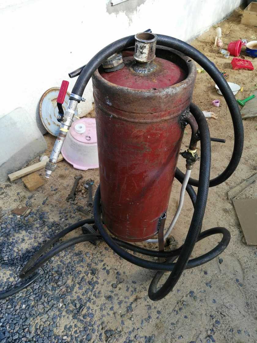 - Герметичная ёмкость для песка. Можно использовать газовый баллон или пластиковую бутылку. Бутылка прослужит очень мало, а потому использовать её надо только в том случае, если есть необходимость одноразовой обработки. Если же нужен аппарат на постоянной основе, то потребуется газовый баллон.