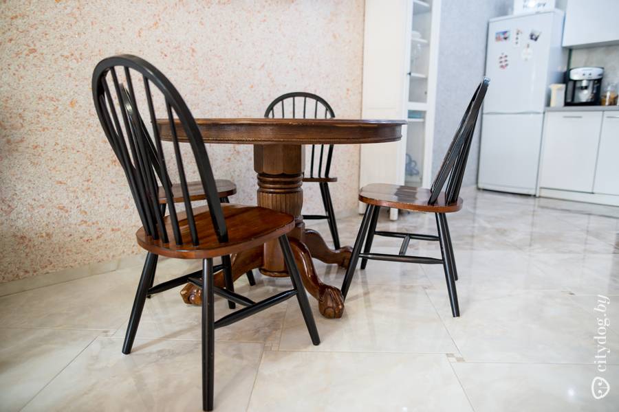 Стол остался от хозяев. Когда мы пришли, мне он жутко не понравился. Но последнее время он мне симпатичен как раз своей массивностью – с легкостью собирает вокруг себя много людей. Объединяет, что ли. У дочери есть игра, в которой нужно бросать сливки в лицо, – часто собираемся именно тут, муж с друзьями играет в «Монополию».