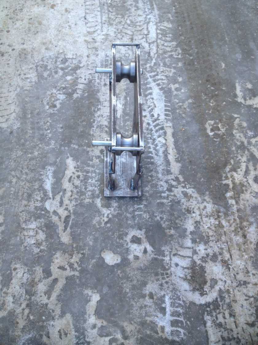 - Между пластинами ручки размещается большой ролик, который насаживается на продетую в отверстие крепежную планку ось вращения и зажимается гайкой.