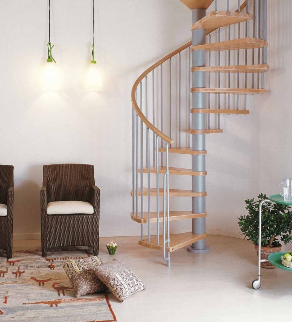 Компактные винтовые конструкции из дерева и металла подойдут для использования не только в малогабаритных многоуровневых квартирах. Такая модель также является идеальным вариантом для дачи, для помещений, в которые не имеется большого и постоянного потока людей.