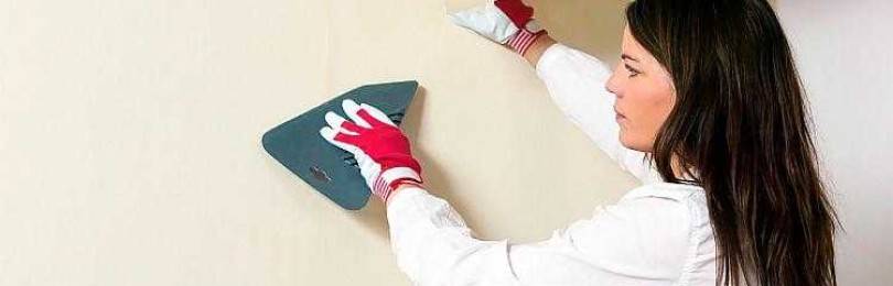 Далее старое покрытие нужно смочить водой для лучшего их снятия. При наличии видимых дефектов можно их устранить, но выравнивание стен при наличии натяжного потолка с помощью гипсокартона или полного покрытия шпаклевкой не рекомендуется.