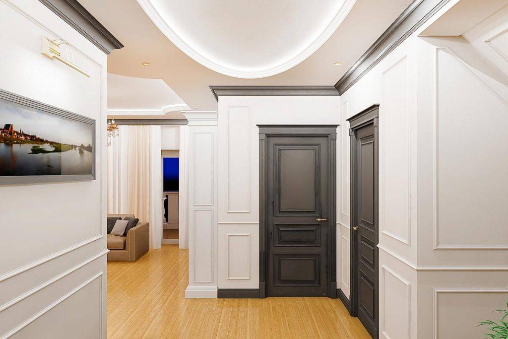 Любители смелых экспериментов могут украсить потолок не слишком громоздкими молдингами либо балками. Их укладывают поперечно. Потолочную поверхность, разграниченную на квадраты, окрашивают в холодный неброский цвет, тогда как сами молдинги должны оставаться белыми. Такой прием углубляет потолок, делая тот как будто выше.