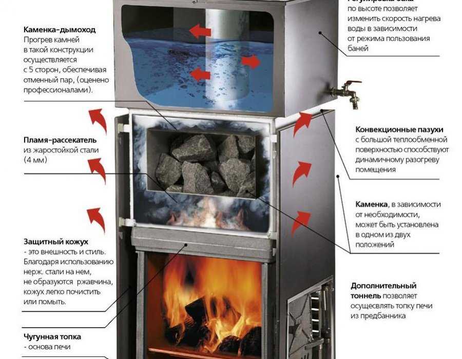 Стоит отметить, что качество парилки во многом зависит от печи, которая используется для обогрева. Сейчас большой популярностью пользуются изделия, выполненные из стали и чугуна.