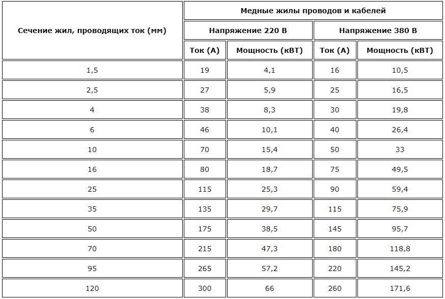 Зная, что 1 мм² алюминиевой жилы пропускает около 4-6 А, а медной — 10 А, высчитывают нужное сечение.
