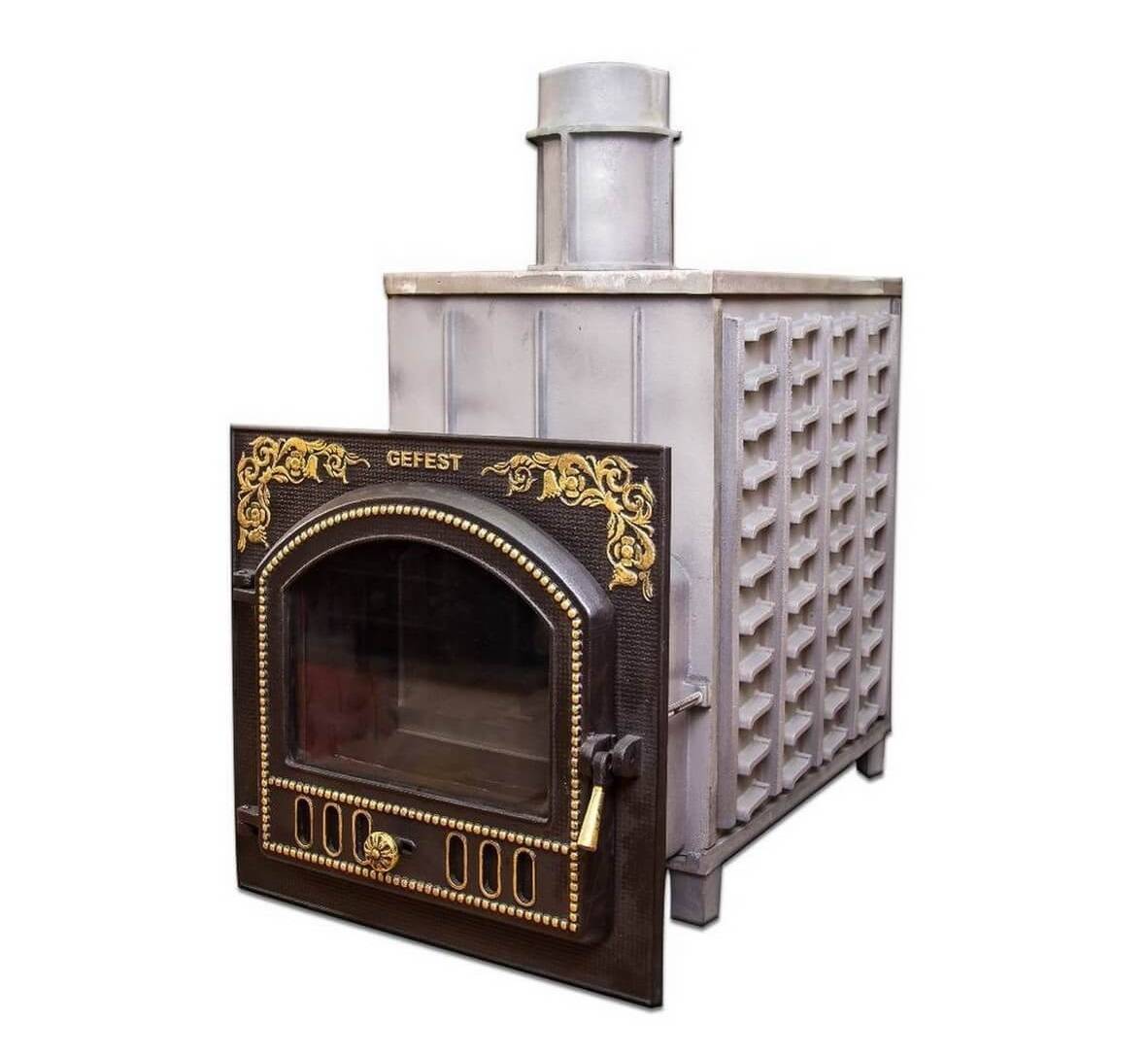 Производством этих изделий для бани занимается компания «Гефест». Сокращение, которое приводится в конце названия говорит о типе каменки. Материалом изготовления конструкции выбран чугун, поэтом можно говорить о продолжительном сроке службы. Толщина стенки камеры сгорания достигает 6 см. Переход на дымоход также выполнен из чугуна, что значительно продлевает срок службы дымохода. Раскочегарить такую печь можно до высокой температуры, но в дымоход дым будет поступать разогретый не более чем до 300 градусов.