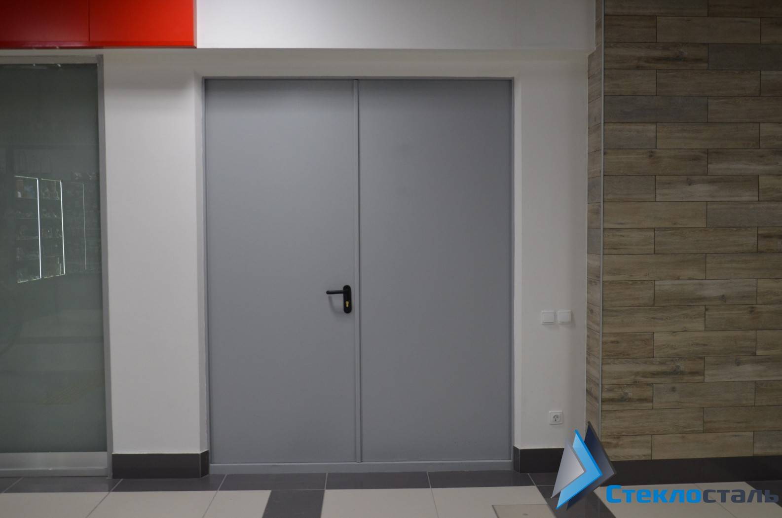 По конструктивным особенностям двери противопожарные металлические делятся на одно- и двупольные. Первые – с глухим полотном или частичным остеклением. Они могут быть маятниковыми или распашными. Их чаще устанавливают в узких коридорах, в узких путях эвакуации, при входе в технические этажи, электрощитовые, небольших размеров склады.