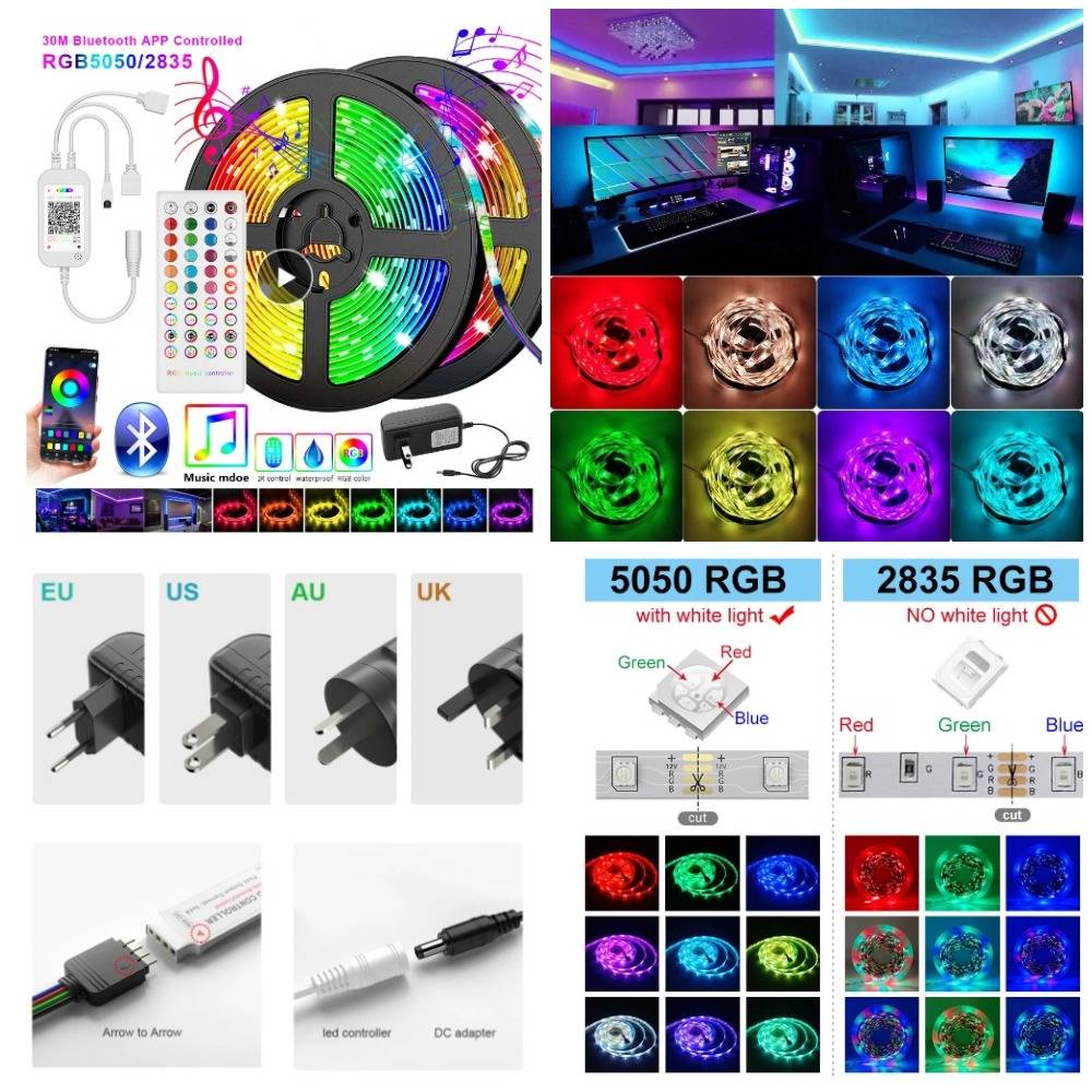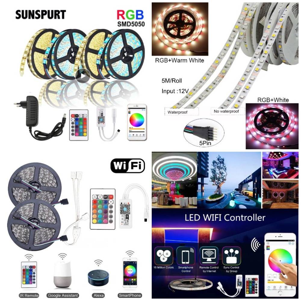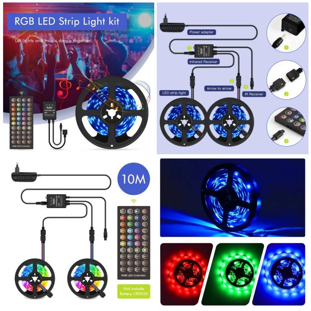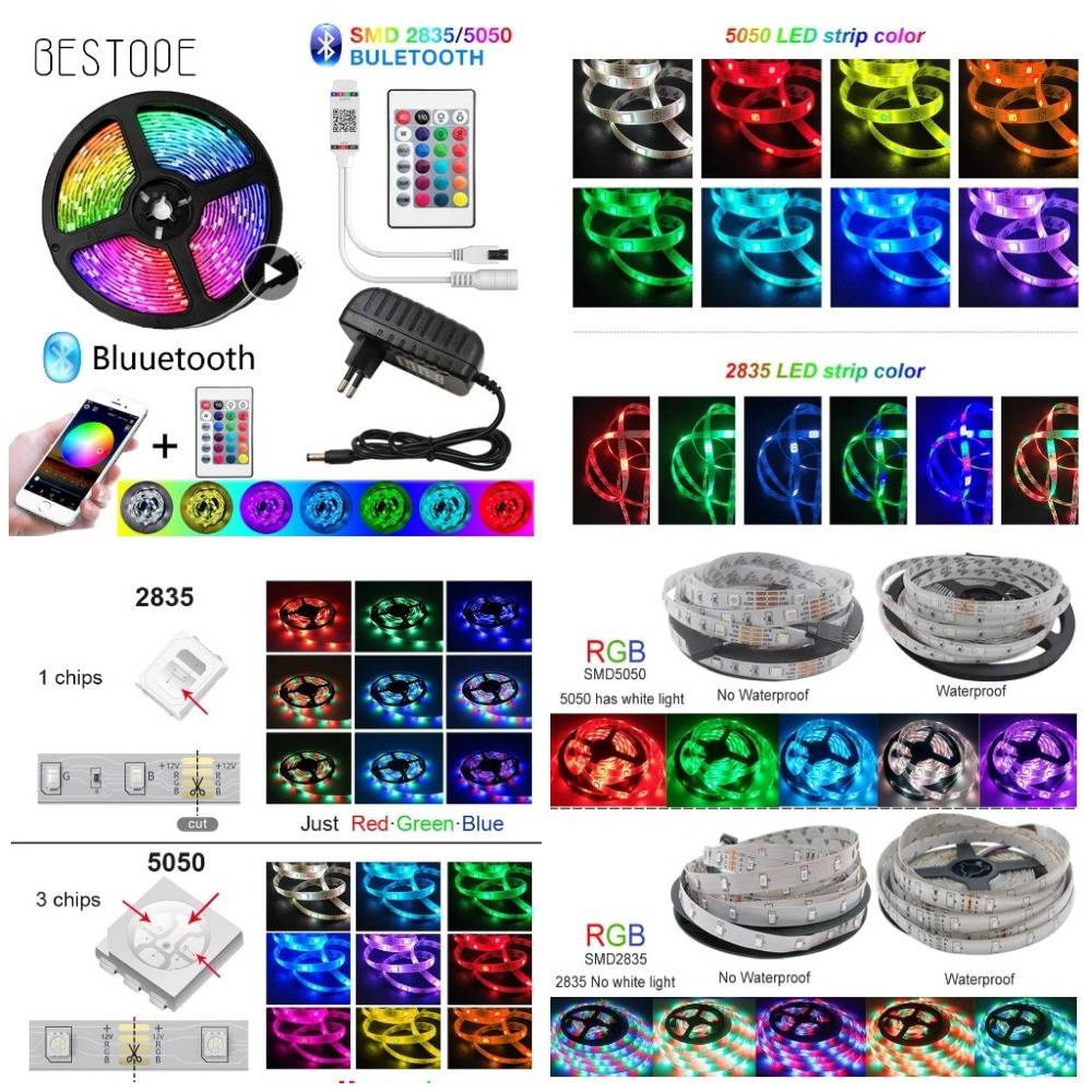 Производитель предлагает массу разновидностей ленты: модели с длиной 5 или 10 метров, с наличием или отсутствием влагозащиты, а также с разными диодами – 2835 и 5050. Комплект поставки включает в себя инфракрасный пульт на 24 или 44 кнопки, а также адаптер постоянного тока на 12В. К слову, пульты поставляются без аккумулятора или батареек.